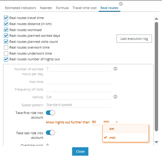 Available with the Premium option and real routes calculation, an estimate of the number of hotel nights required to complete all visits in a territory is now available.