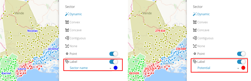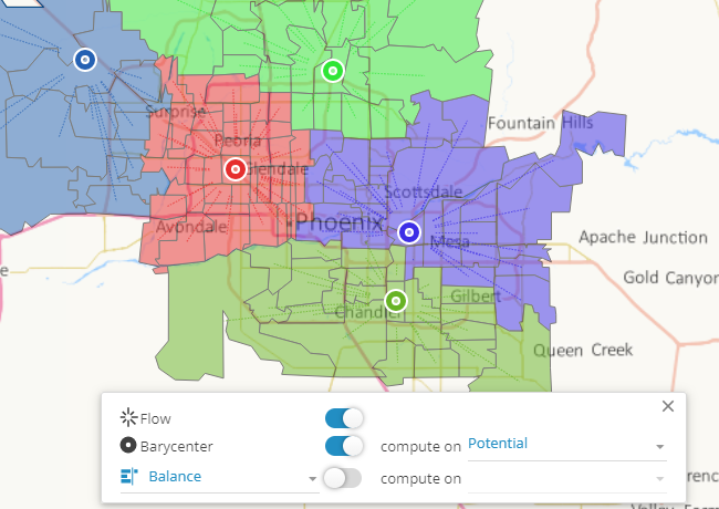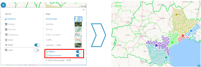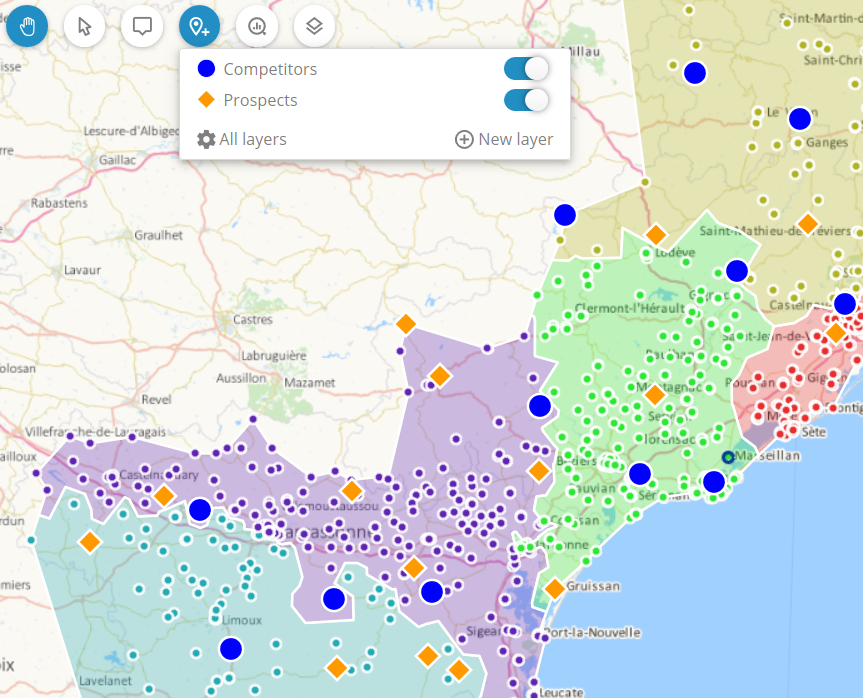 You can thus work on very large volumes of points, or follomake the territory assignment follow geographical area borders (postal codes, municipalities, etc.) while working with data carried by points.