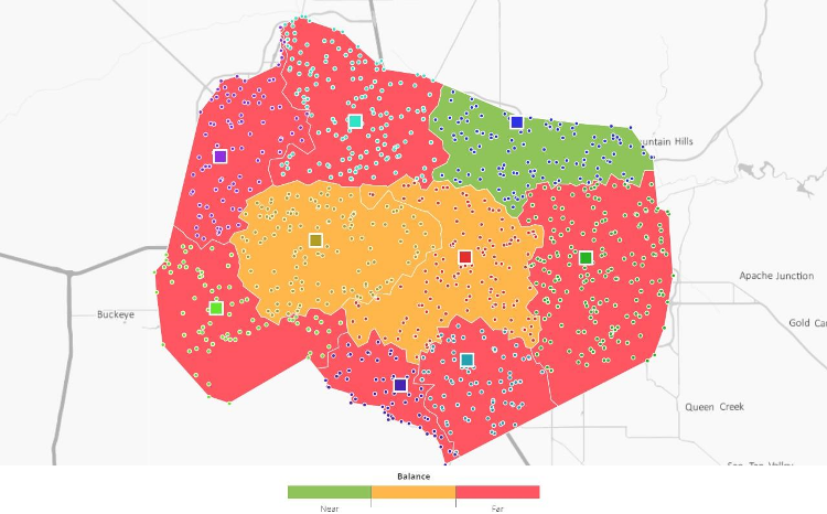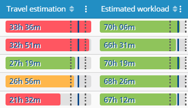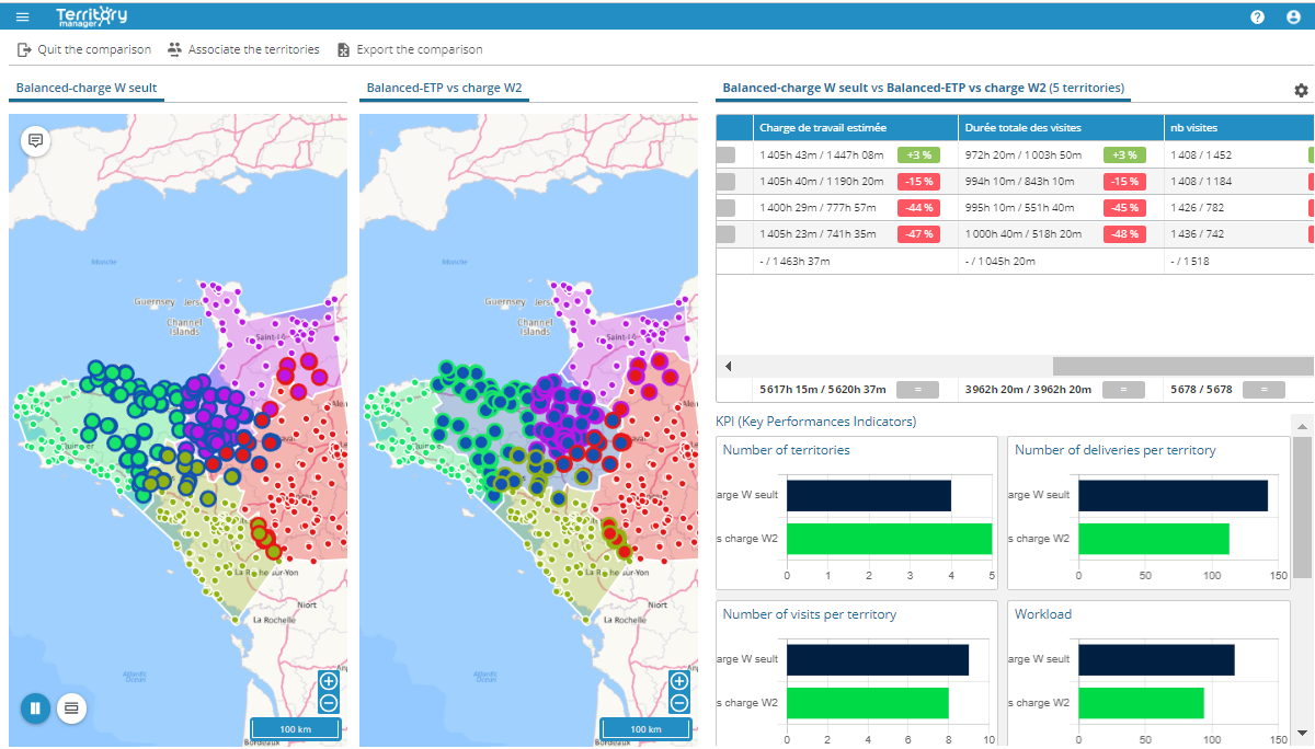 Associated to dynamic graphs you now have balancing based on workload, combining estimated journey and visit times, providing additional attributes facilitating instant viewing of territories differences and deviations.
