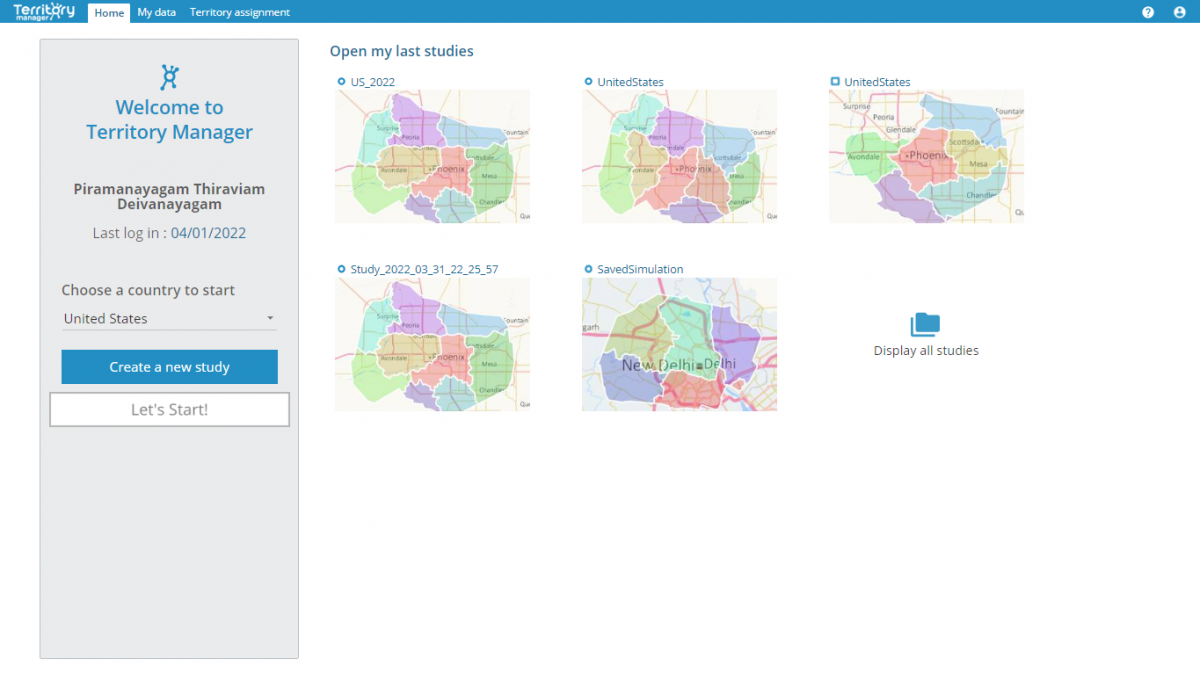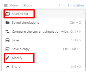 The various simulations grouped in studies can now be saved and consulted from within the solution. From the Home page, the user can choose to open an existing study or create a new one.