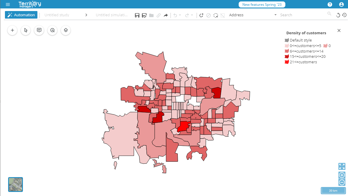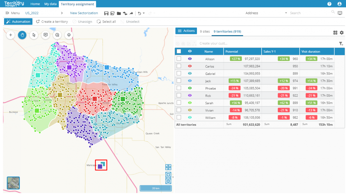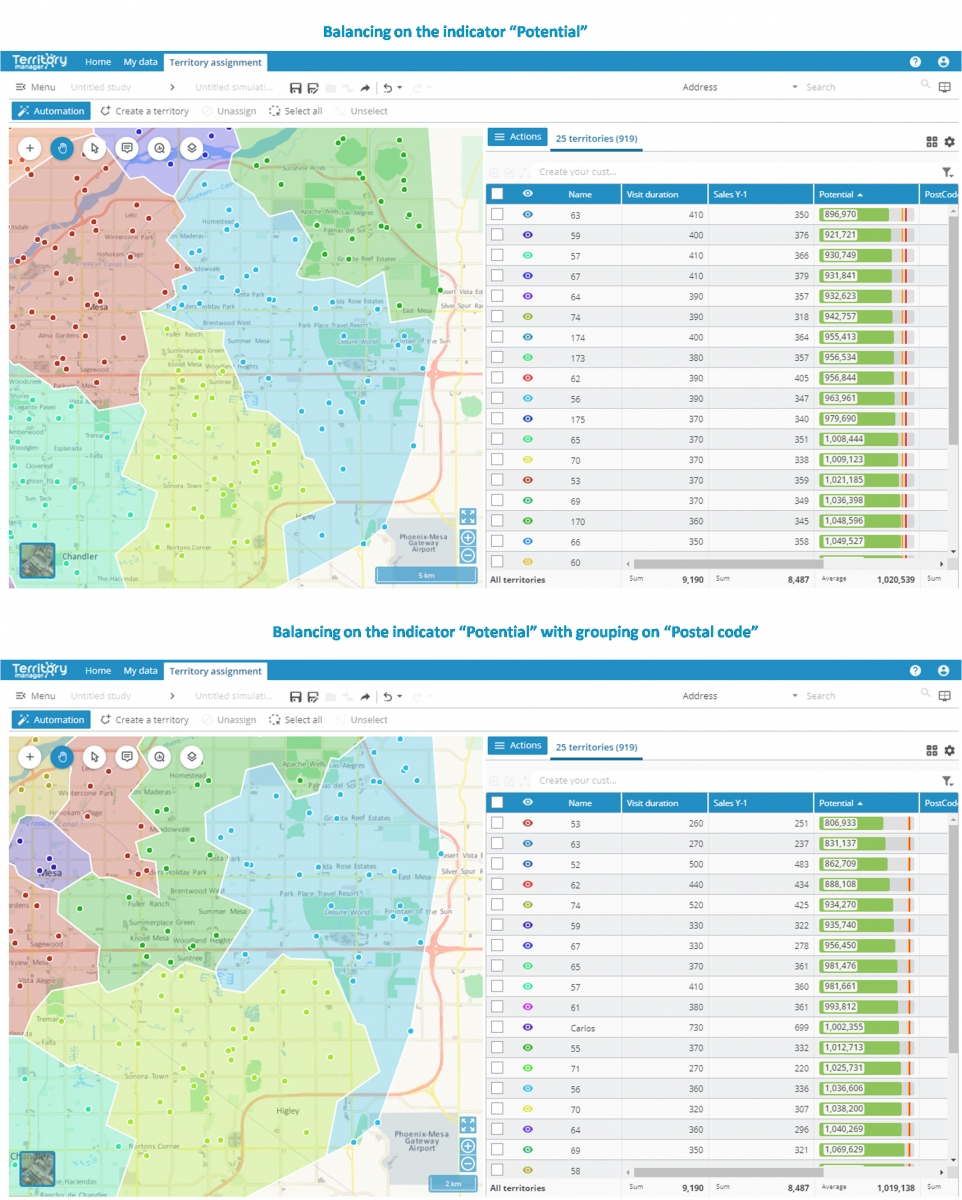 When you want to carry out automatic territory assignment, a new overview mode allows you to view the options at a glance. You can therefore launch the operation with a single click if the default options are suitable, for example.