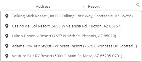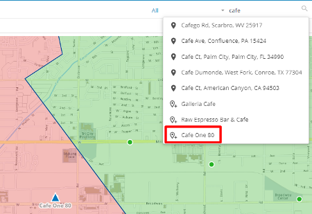 This tool uses an intuitive autocomplete mechanism to search for, and display, a customer, an address or a city in the map and the table by names or allocated code.