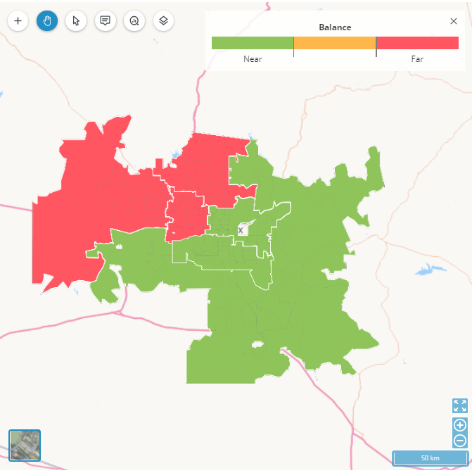 To simulate the closure of an agency or site, this new functionality redistributes a territory and its points to territories nearby.
