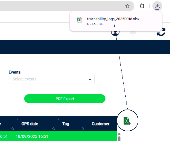 The Excel export functionality has been changed, now taking the form of an Excel button next to the table, directly clickable.