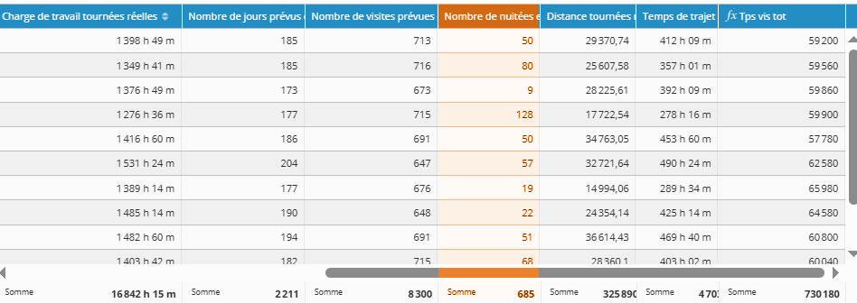 Disponible avec l'option Premium et le calcul des tournées réelles, une estimation du nombre de nuits d'hôtel nécessaire pour réaliser toutes les visites d'un territoire est désormais disponible.