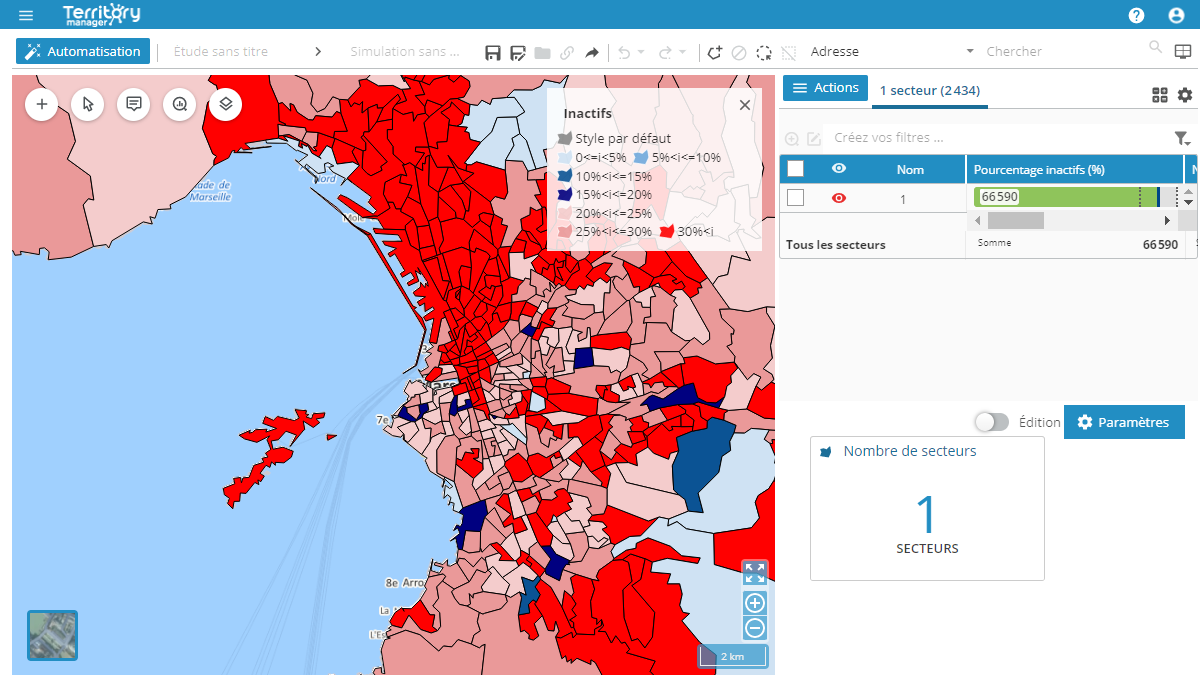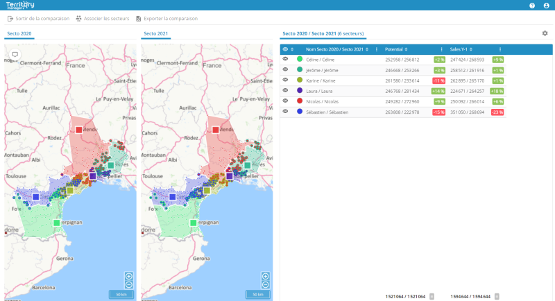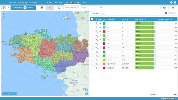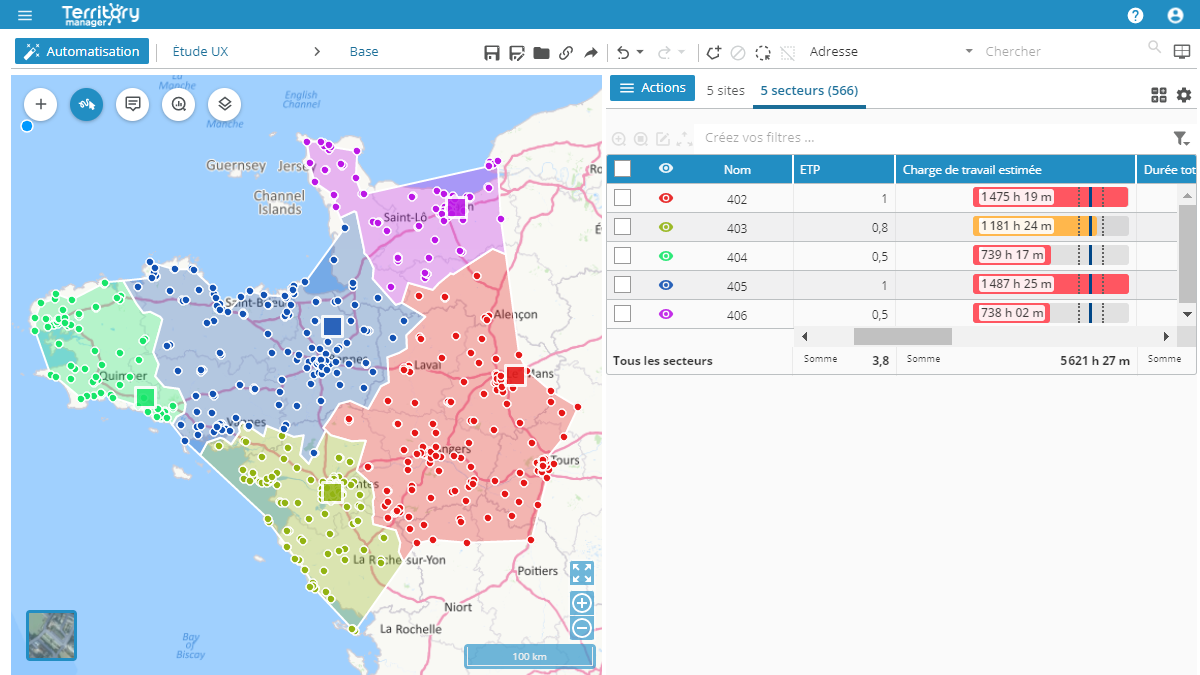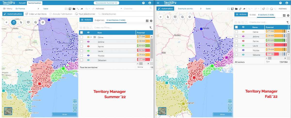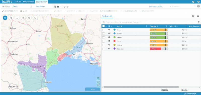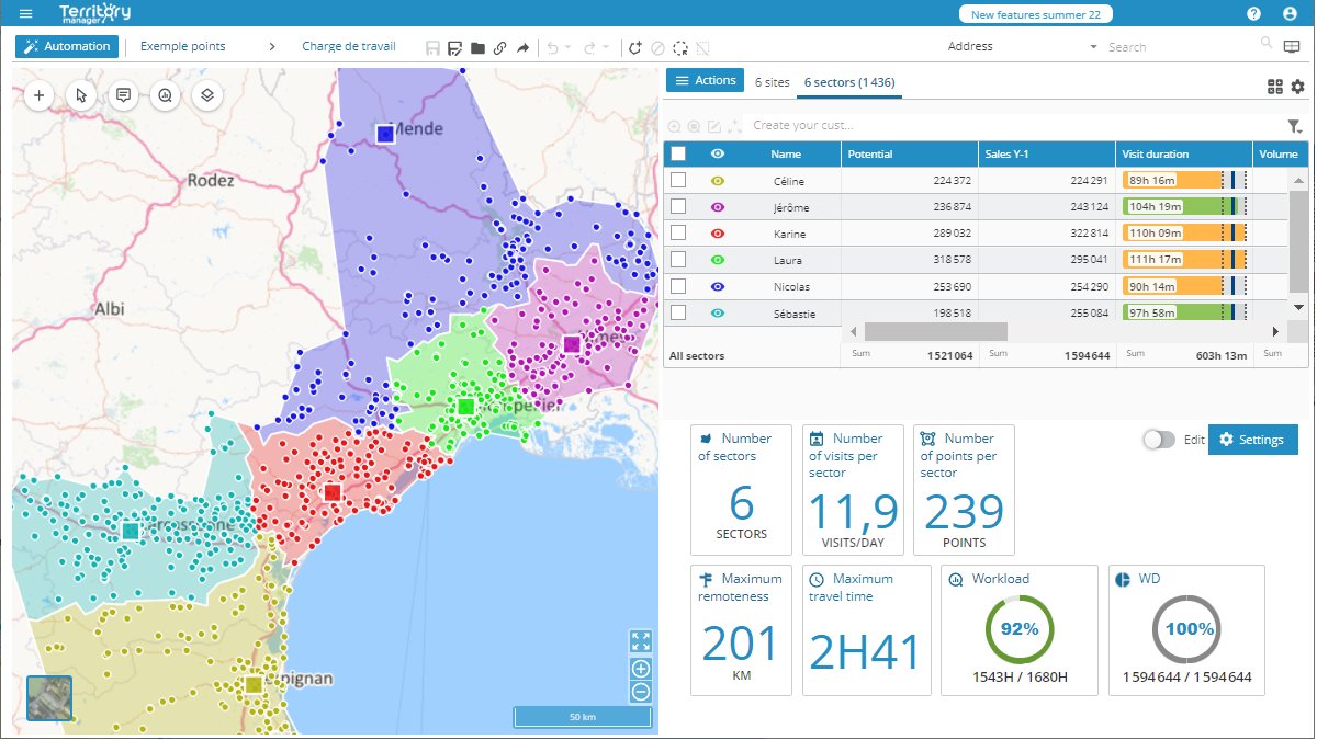 Quatre fois plus rapide, la nouvelle version de Territory Manager est plus performante grâce à des algorithmes puissants et une refonte du code. Elle permet ainsi de réaliser des sectorisations aux échelles continentales.