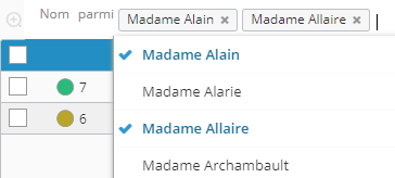• Opérateur Parmi listé en premier dans les filtres sur des indicateurs de type Chaîne (Nom, etc.) pour bénéficier du choix d'auto-complétion automatique des valeurs