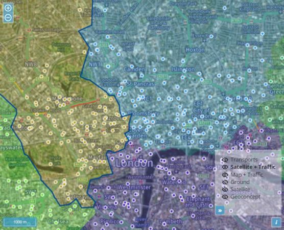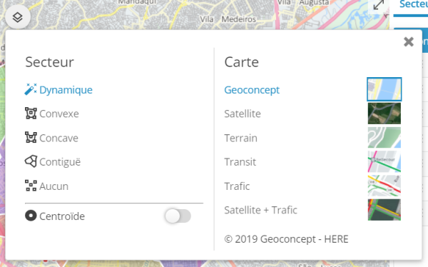 Ajout d'un sélecteur pour choisir le fond de carte parmi ceux proposés (carte, satellite, trafic, transports, ...).