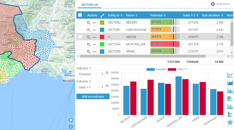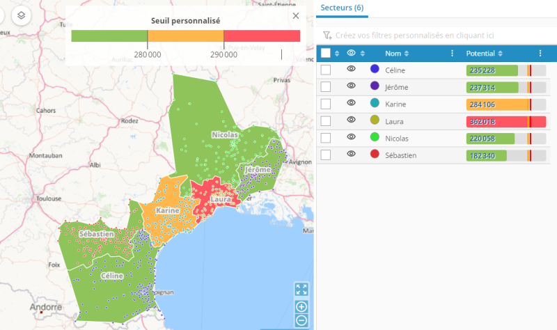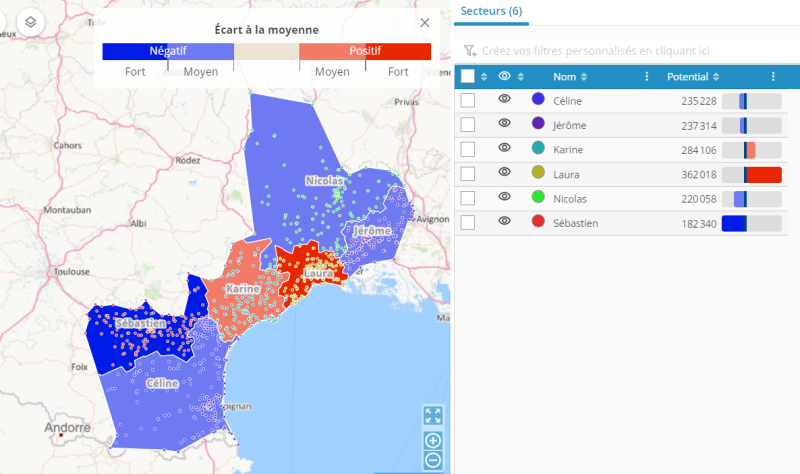 La solution propose, en plus du nombre de points, de combiner jusqu’à trois indicateurs différents (Ex : revenu, potentiel, priorité…) pour calculer un équilibrage.