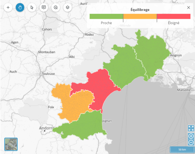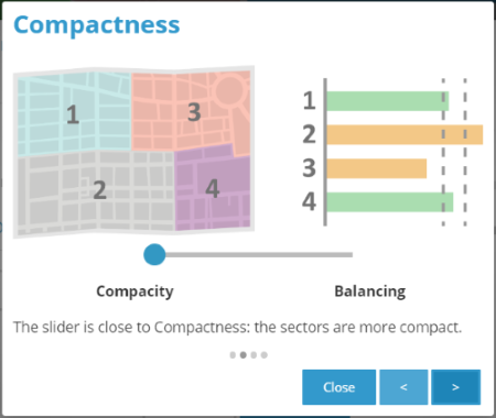En complément du mode interactif, il est désormais possible sur les polygones, que ce soit les Iris ou les communes, de réaliser automatiquement des sectorisations équilibrées.